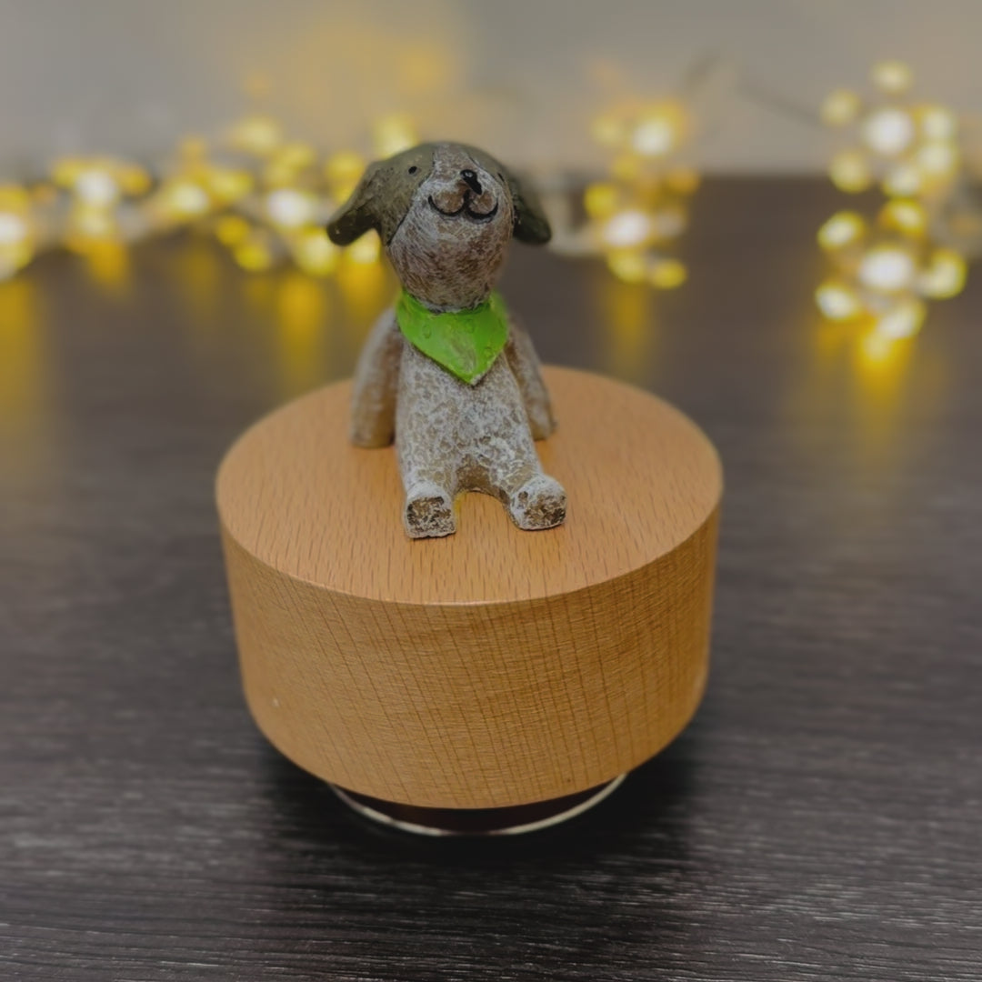Celebrate the joy of loyal companionship with this handcrafted wooden music box, featuring a delightful dog figurine sitting proudly on top. With every gentle melody, this keepsake captures the warmth and love of our furry best friends, making it the perfect gift for dog lovers and music box collectors alike.