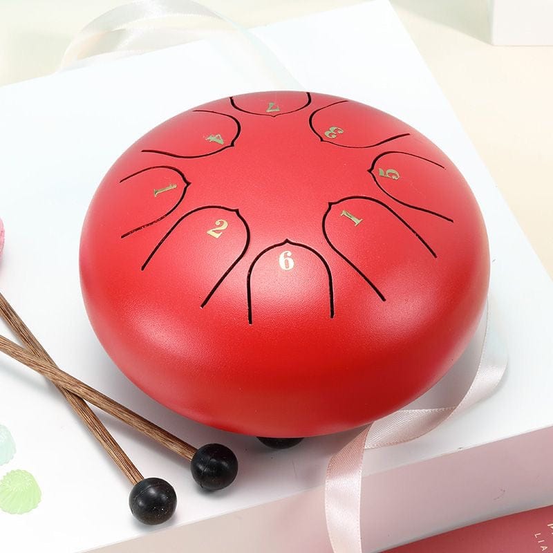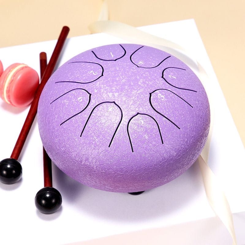 The steel tongue drum produces a clear and bright sound. Additionally, its compact size allows for easy transportation in a backpack, enabling you to enjoy musical enlightenment wherever you go!